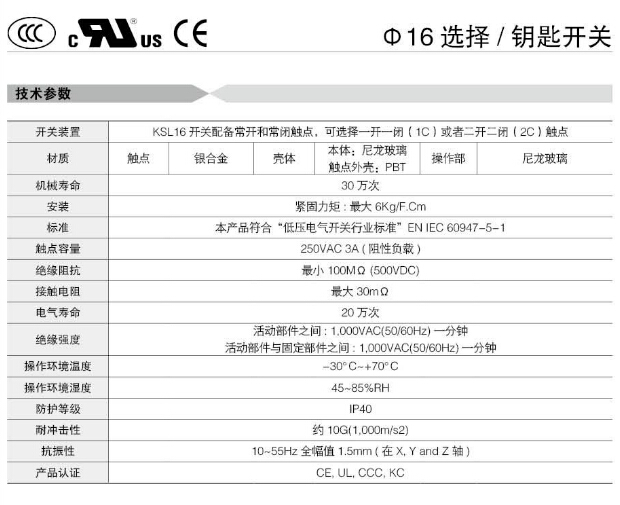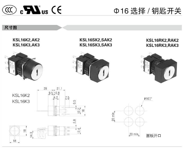 詳細信息 KSL16K2,KSL16AK2,KSL16K3,KSL16AK3,KSL16SK3,KSL16SAK3,KSL16RK2,KSL16RAK2,KSL16RK3,KSL16RAK3,KoinoΦ16鑰匙開關(guān)