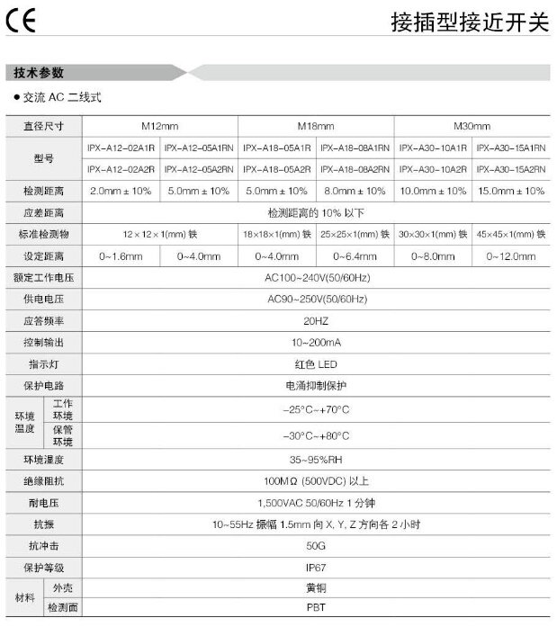 詳細(xì)信息 IPX-2D30-10A1R,IPX-A12-02A1R,IPX-A18-05A1R,IPX-A30-15A1RN,Koino接插型接近開關(guān)