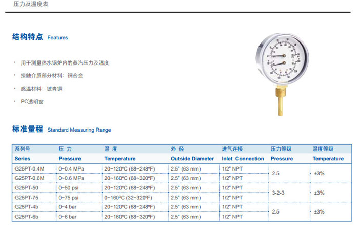 G25PT-0.4M,G25PT-0.6M,G25PT-50,G25PT-75,G25PT-4b,G25PT-6b,壓力及溫度表