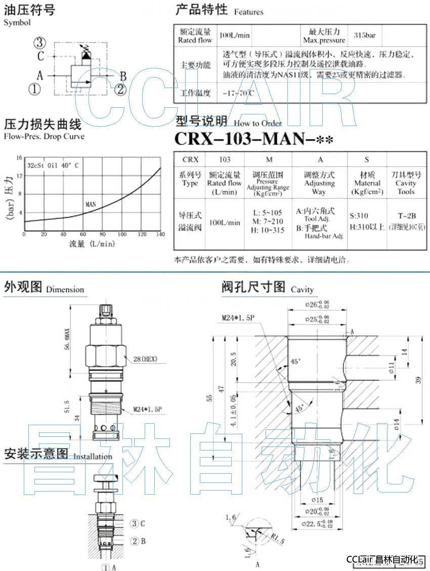 詳細信息 CRX-103-MAN-S,CRX-103-LAN-S,CRX-103-HAN-S,CRX-103-MBN-S,CRX-103-LBN-S,導壓式溢流閥