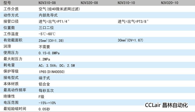 質(zhì)為經(jīng)過過濾干燥的清潔空氣、工作壓力為0.15~0.8MPa。N3V300系列電磁閥廣泛應(yīng)用于氣動(dòng)系統(tǒng)中,