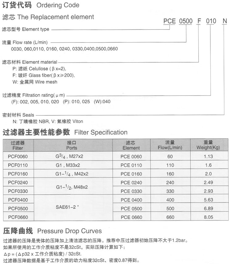 PCE0060,PCE0110,PCE0160,PCE0240,PCE0330,PCE0400,PCE0500,PCE0660,PCE0060F002N,中壓過濾器濾芯