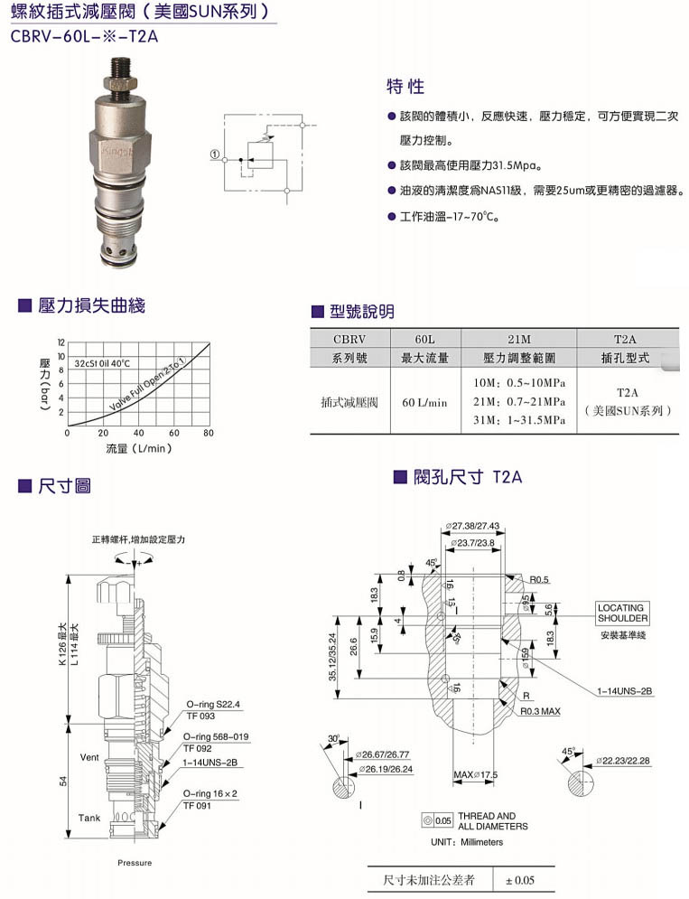 詳細信息 CBRV-60L-10M-T2A,CBRV-60L-21M-T2A,CBRV-60L-31M-T2A,螺紋插式減壓閥