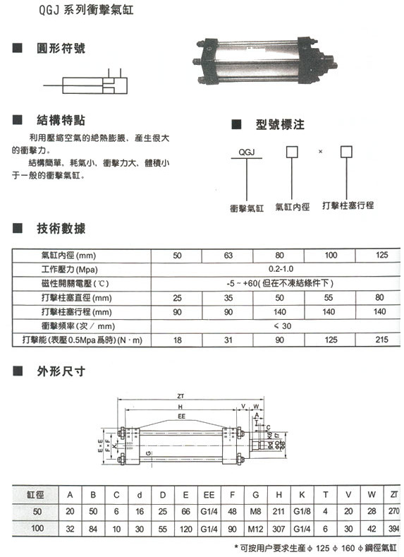 詳細(xì)信息 QGJ-50*90,QGJ-63*90,QGJ-80*140,QGJ-100*140,QGJ-125*140,沖擊氣缸