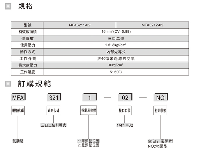 電磁閥 MFA3211-01,MFA3211-01-NO,MFA3212-01,MFA3212-01-NO,MFA3211-02,MFA3211-02-NO