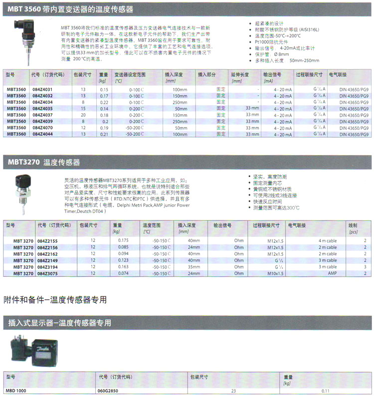 MBT3260,MBT5250,MBT5252,MBT3560,MBT3270,溫度傳感器
