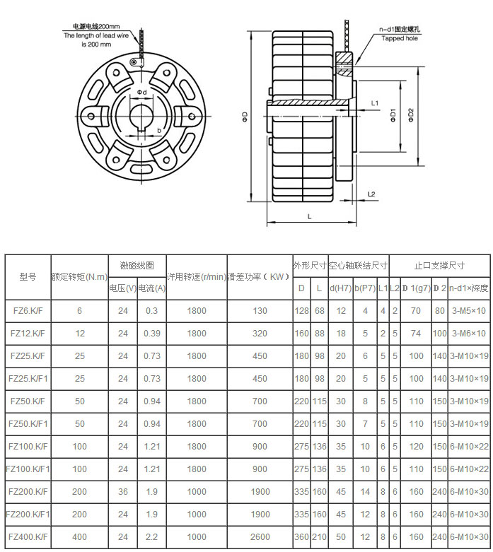FZ6.K/F,FZ12.K/F,FZ25.K/F,FZ25.K/F1,FZ50.K/F,FZ50.K/F1,FZ100.K/F,FZ100.K/F1,磁粉制動器