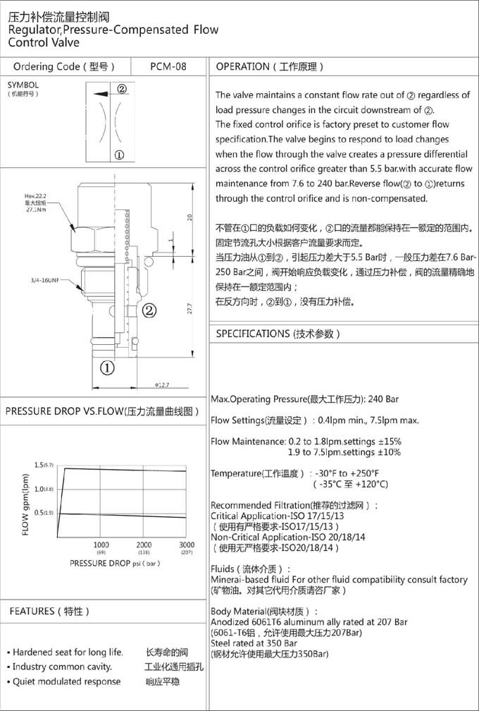 產(chǎn)品: 瀏覽次數(shù):812PCM-08,壓力補(bǔ)償流量控制閥