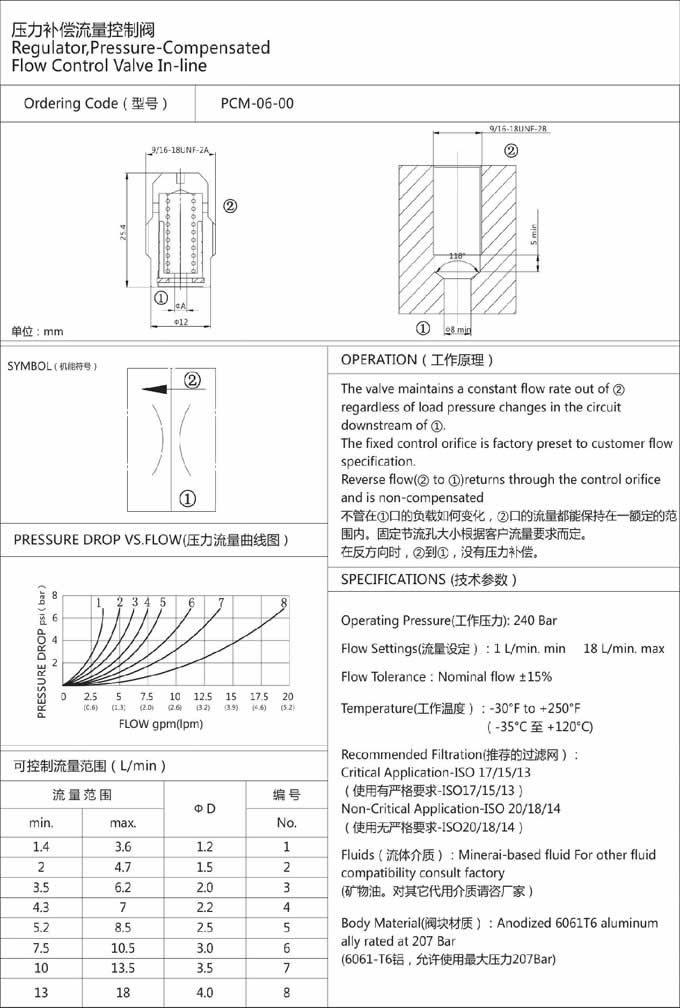產(chǎn)品: 瀏覽次數(shù):756PCM-06-00,壓力補償流量控制閥