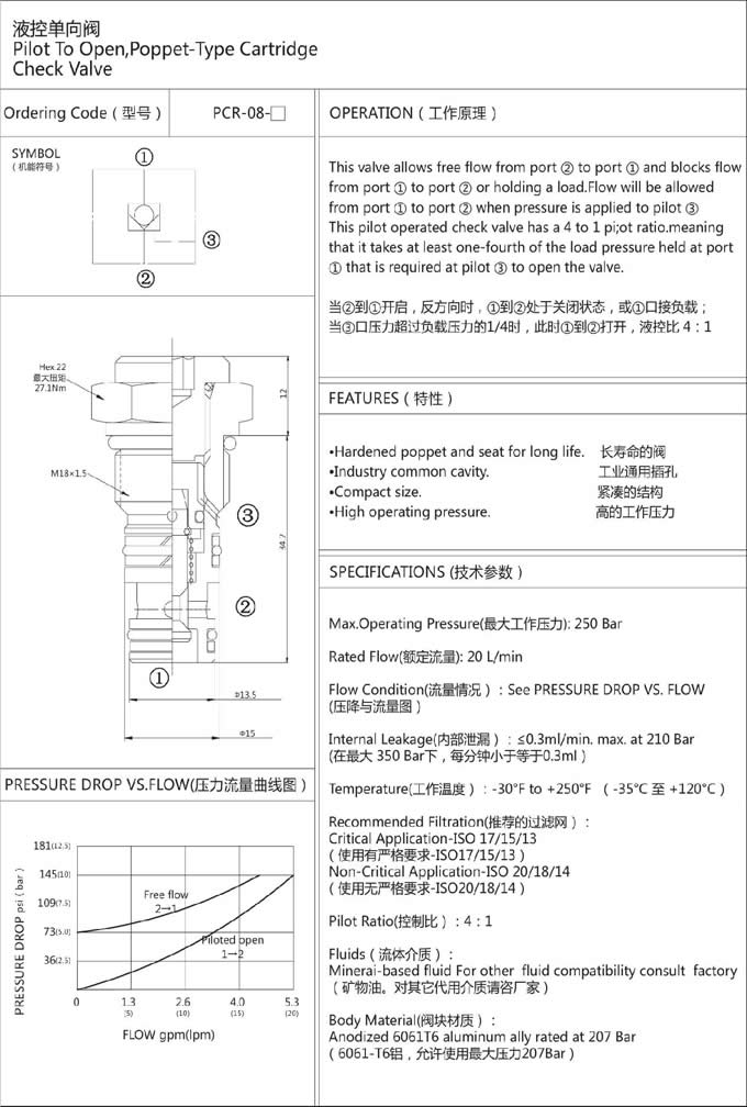 詳細(xì)信息 PCR-08-20,PCR-08-50,液控單向閥