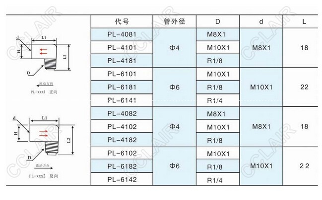 詳細信息 PL-4081,PL-4101,PL-4181,PL-6101,PL-6181,PL-6141,PL-4082,PL-6142,單向直角接頭