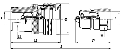 | 昌林液壓 | 國際標(biāo)準(zhǔn) | L1 | L2 | L3 | ØD | S1 | S2 | T | 母接頭編號(hào) | 公接頭編號(hào) |