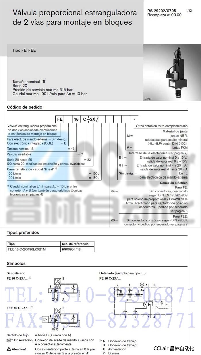 FEE16C-2X/100LK0B1V,FEE16C-2X/100LK0G1M,FE16C-2X/25LK4V,,通先導(dǎo)式比例節(jié)流閥,力士樂REXROTH,德國(guó)力士樂