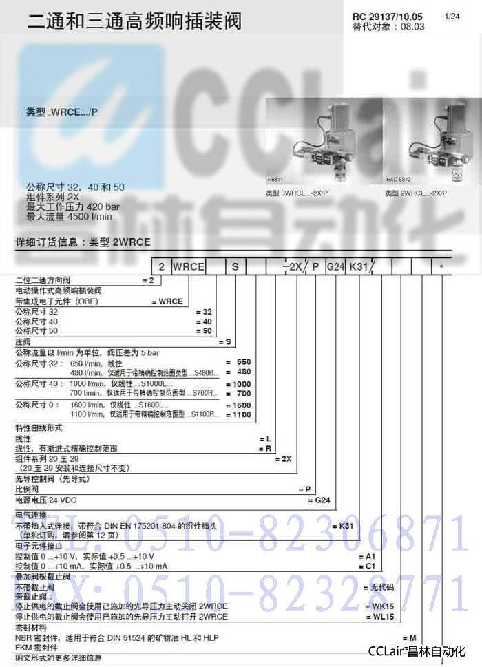 詳細信息 2WRCE50S1600L-2X/PG24K31/A1M,2WRCE50S1100R-2X/PG24K31/A1V,二通和三通高頻響插裝閥,力士樂REXROTH,德國力士樂