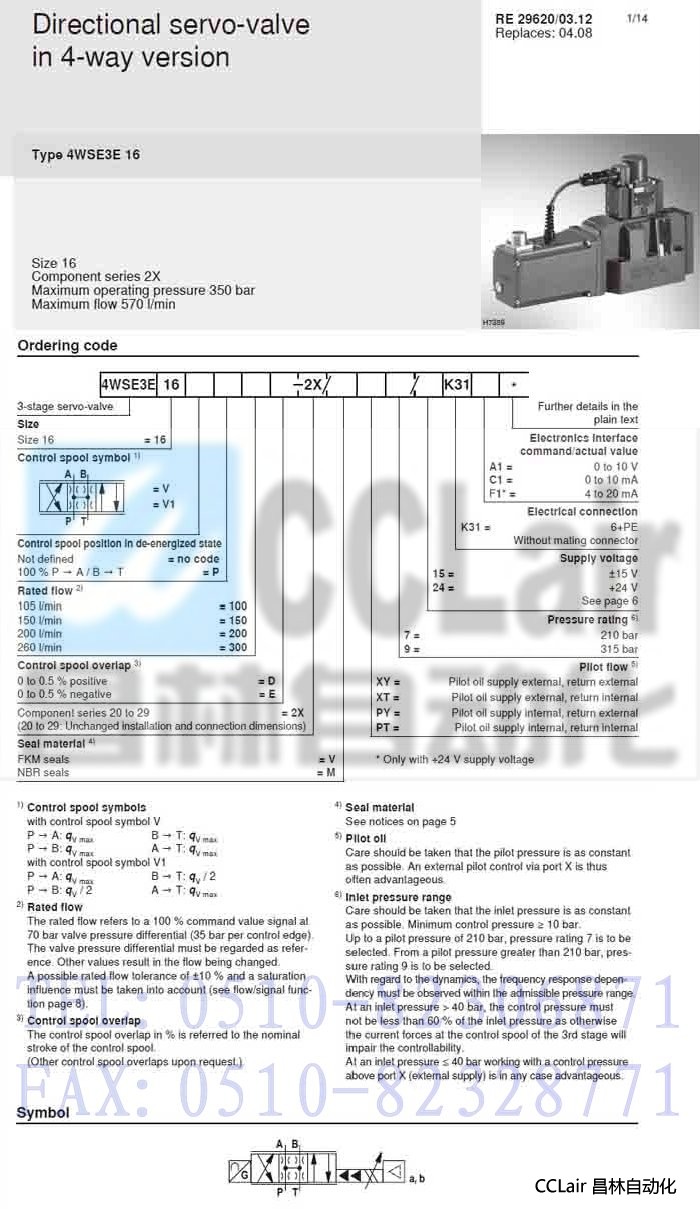 4WSE3E16V300D2X/VPT9/15K31A1,4WSE3E16V300E2X/VXY9/24K31A1, ,方向伺服閥,力士樂(lè)REXROTH,德國(guó)力士樂(lè)