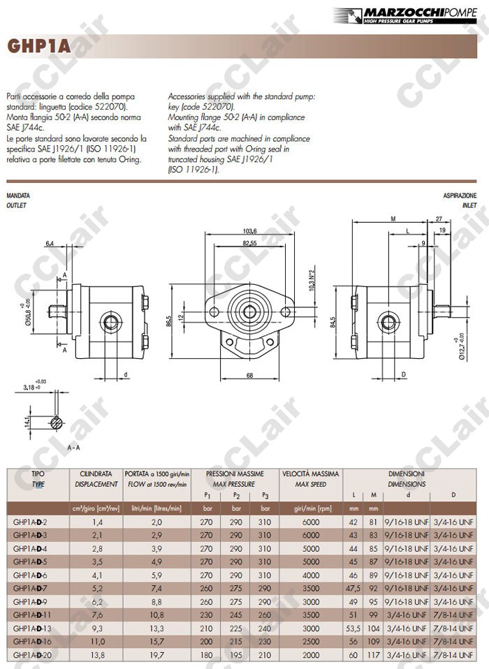 詳細(xì)信息 GHP1A-D,GHP1A-D-2,GHP1A-D-3,GHP1A-D-4,GHP1A-D-5,GHP1A-D-6,GHP1A-D-7,GHP1A-D-9,MARZOCCHI齒輪油泵
