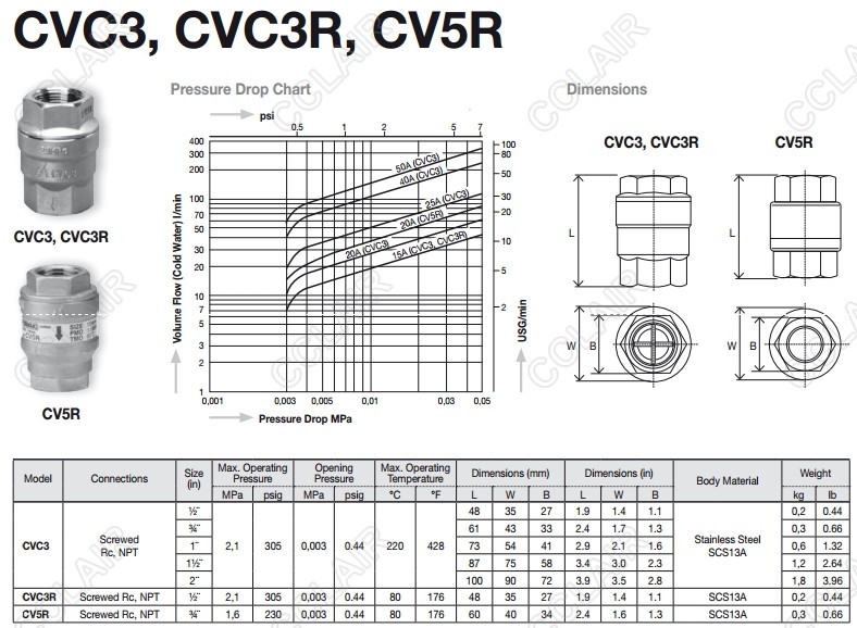 詳細(xì)信息 CVC3,CVC3R,CV5R,miyawaki止回閥