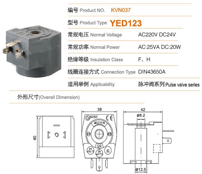 瀏覽次數(shù):655YED123,脈沖閥線圈 |
