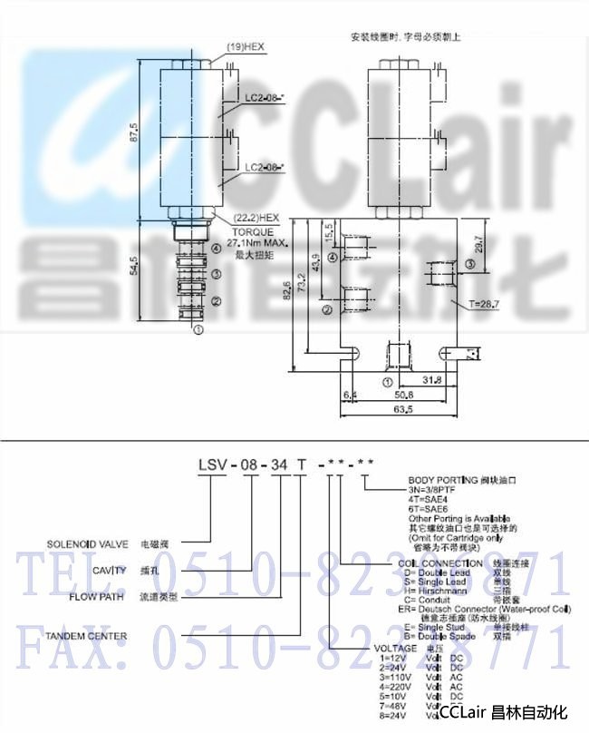 LSV-08-34T-7D,LSV-08-34T-7H,LSV-08-34T-7C,LSV-08-34T-7S,三位四通電磁閥