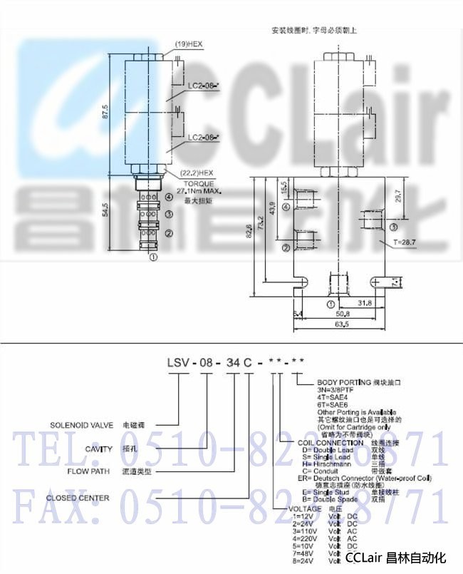 LSV-08-34C-7D,LSV-08-34C-7H,LSV-08-34C-7C,LSV-08-34C-7S,三位四通電磁閥,