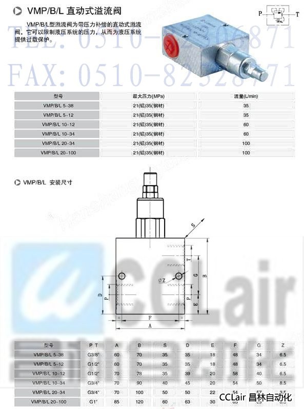 VMP/B/L 5-38,VMP/B/L 5-12,VMP/B/L 10-12,VMP/B/L 10-34,直動(dòng)式溢流閥