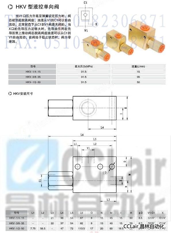 詳細(xì)信息 HKV-1/4-15,HKV-3/8-35,HKV-1/2-50,液控單向閥