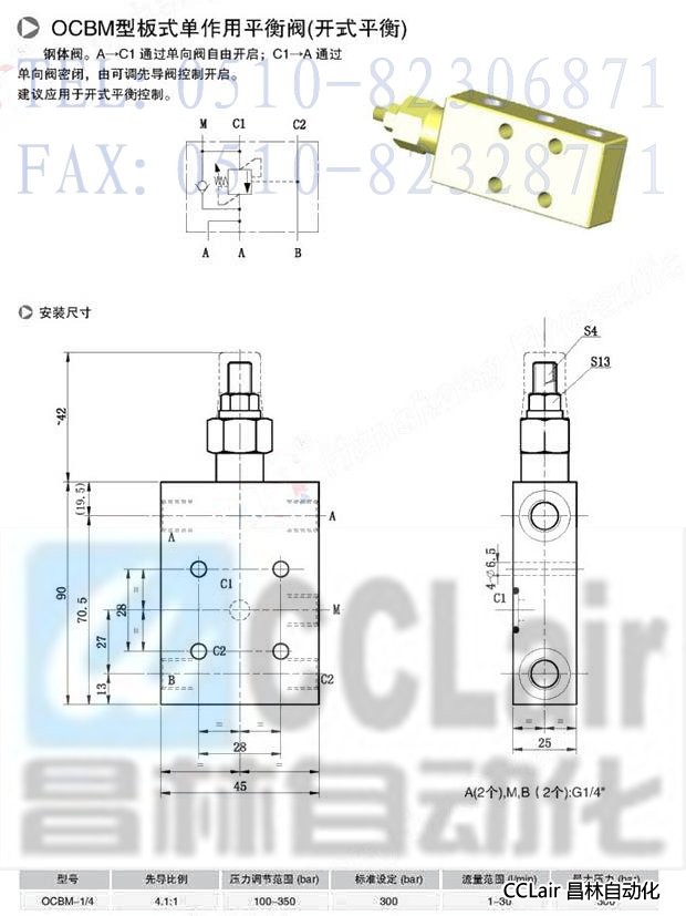 OCBM-1/4,板式單作用平衡閥(開(kāi)式平衡)