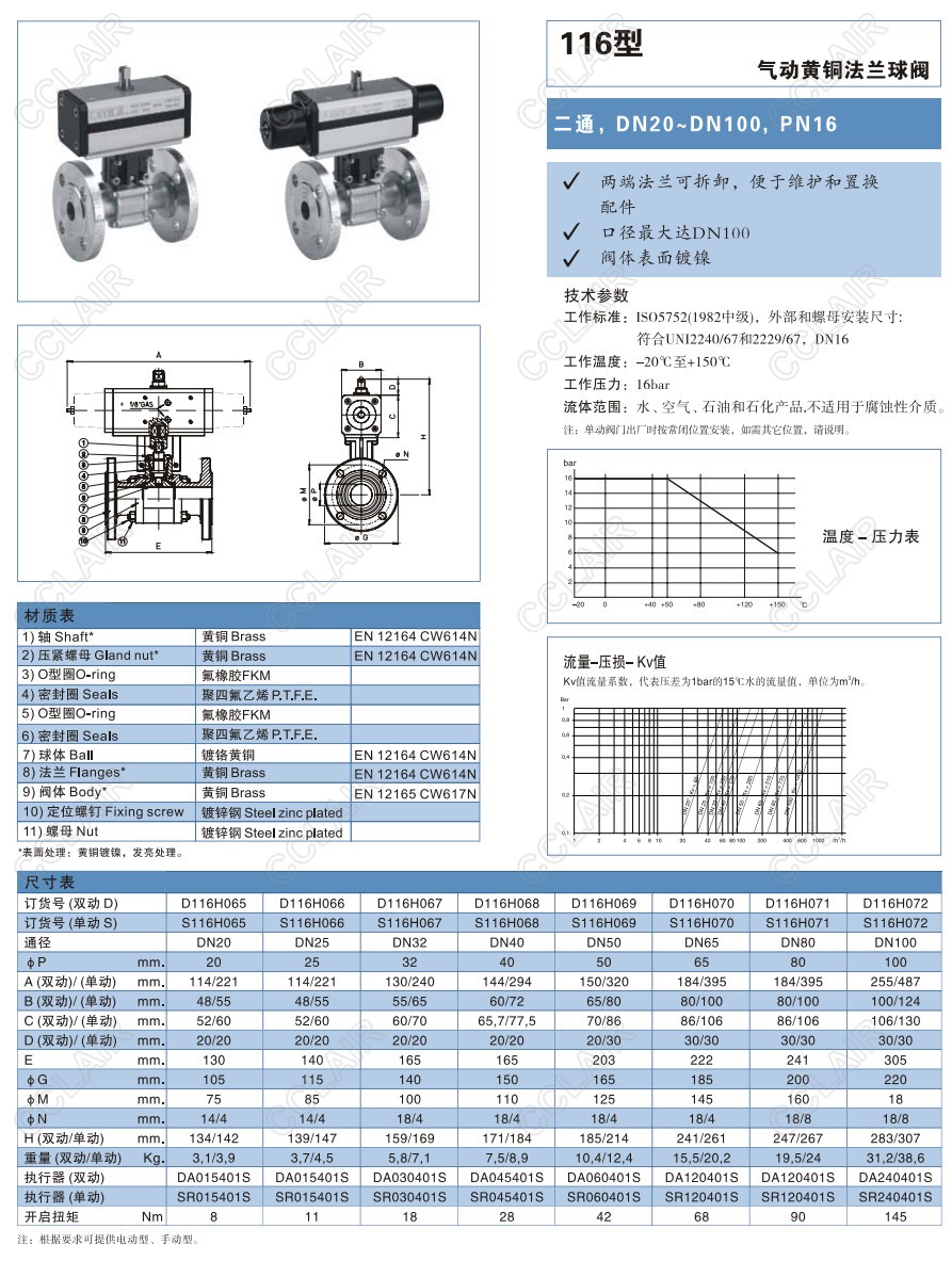 D116H065,D116H066,D116H067,S116H069,S116H070,S116H071,S116H072,116型氣動黃銅法蘭球閥OMAL