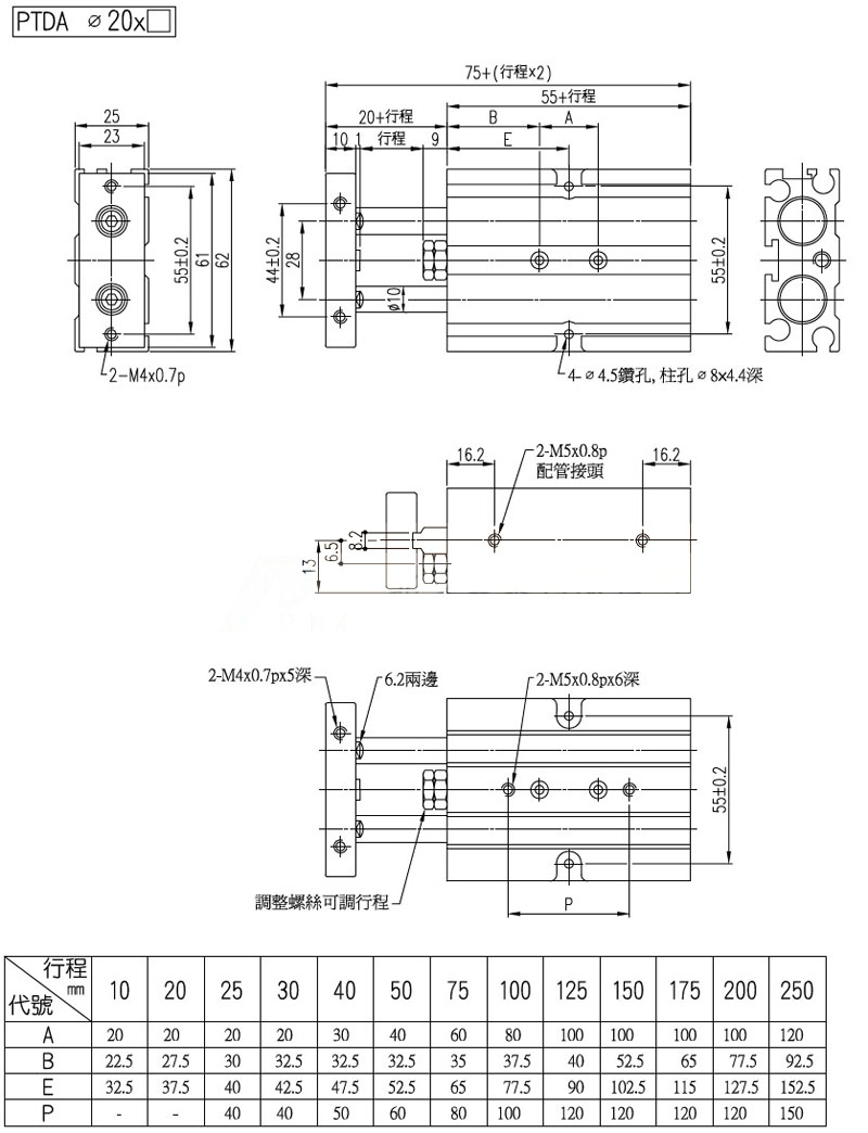 PTDA-32*150-S-2,PTDA-32*175-S-2,PTDA-32*200-S-2,PTDA-32*250-S-2,