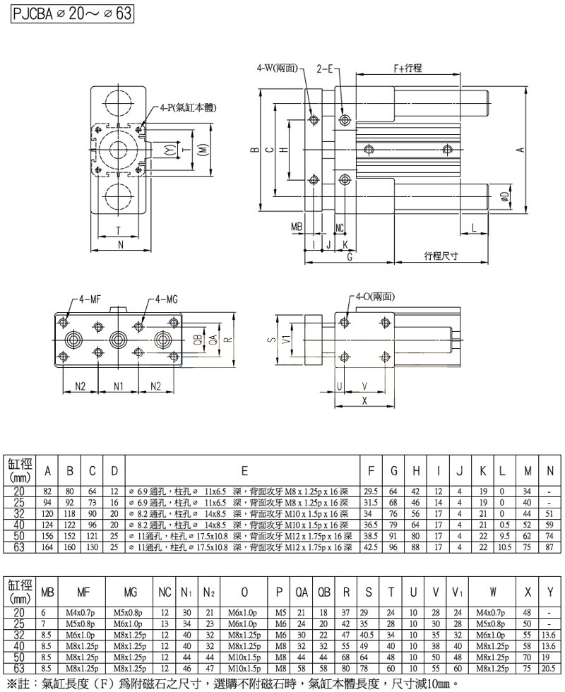 PJCBA-20,PJCFA-32,PJCBA-40,PJCFAAD-20,PJCBAAD-32,panix滑臺治具氣缸