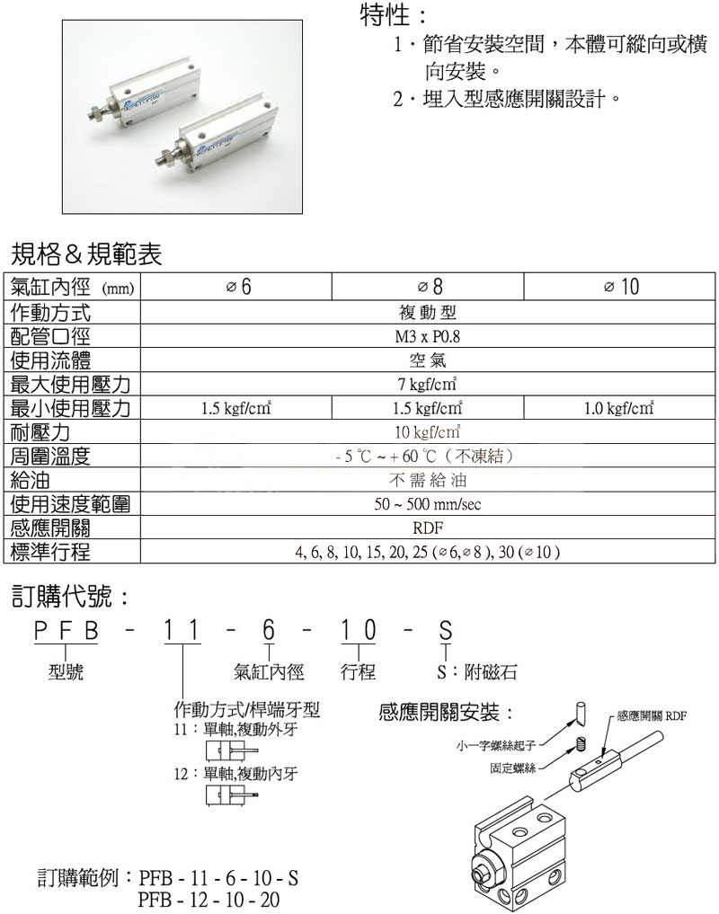 PFB-11-6,PFB-11-8,PFB-11-10,PFB-12-6,PFB-12-8,panix自由安裝氣壓缸 |