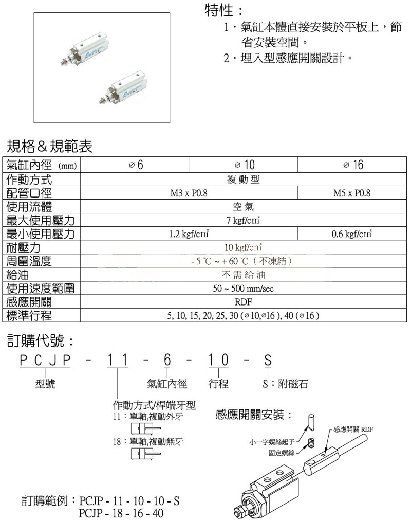 PCJP-11-6,PCJP-11-10,PCJP-11-16,PCJP-18-6,PCJP-18-10,panix復動螺牙氣缸 |
