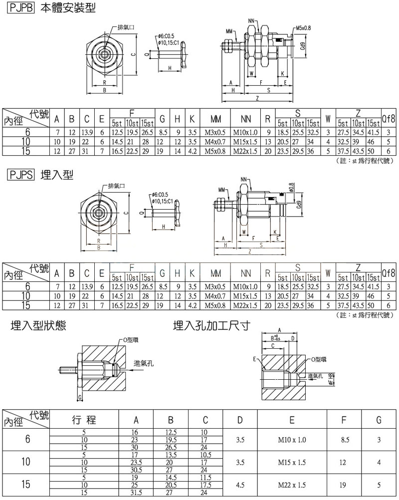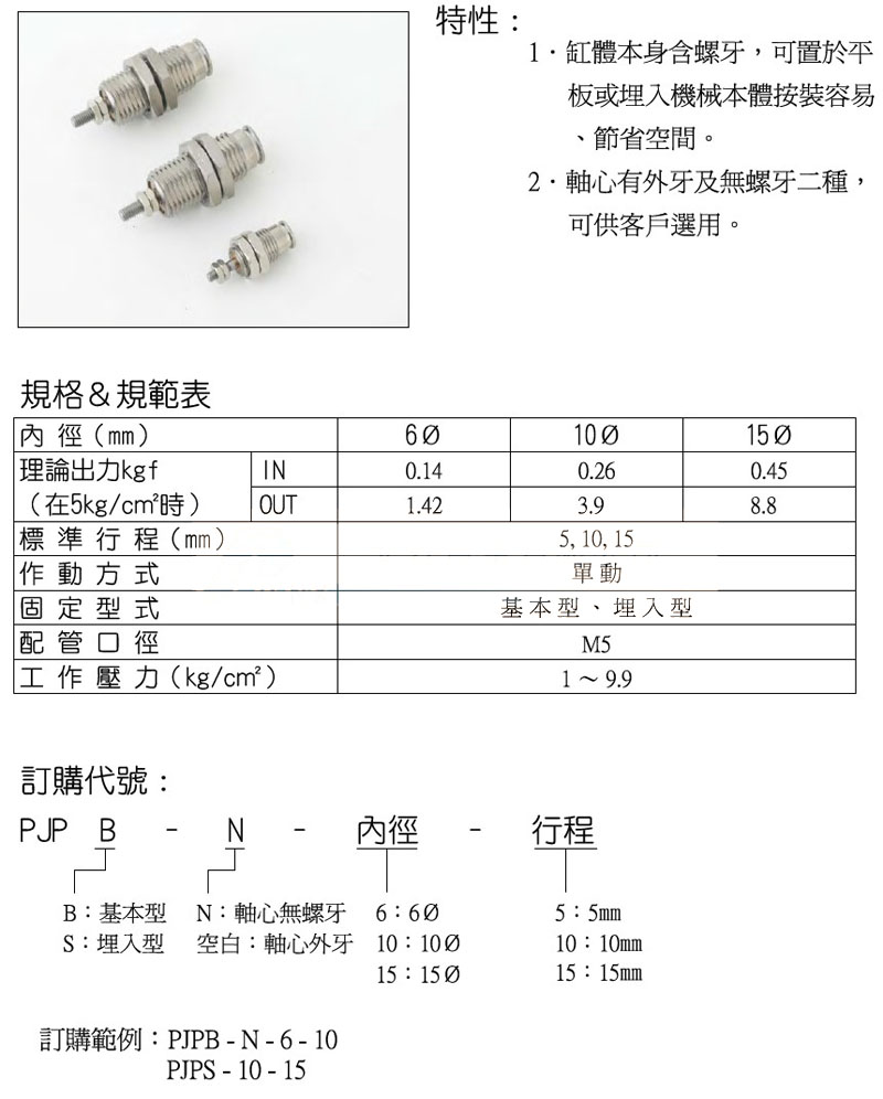 PJPB-N-6,PJPB-N-10,PJPB-15,PJPS-N-6,PJPS-10,panix單動螺牙氣缸