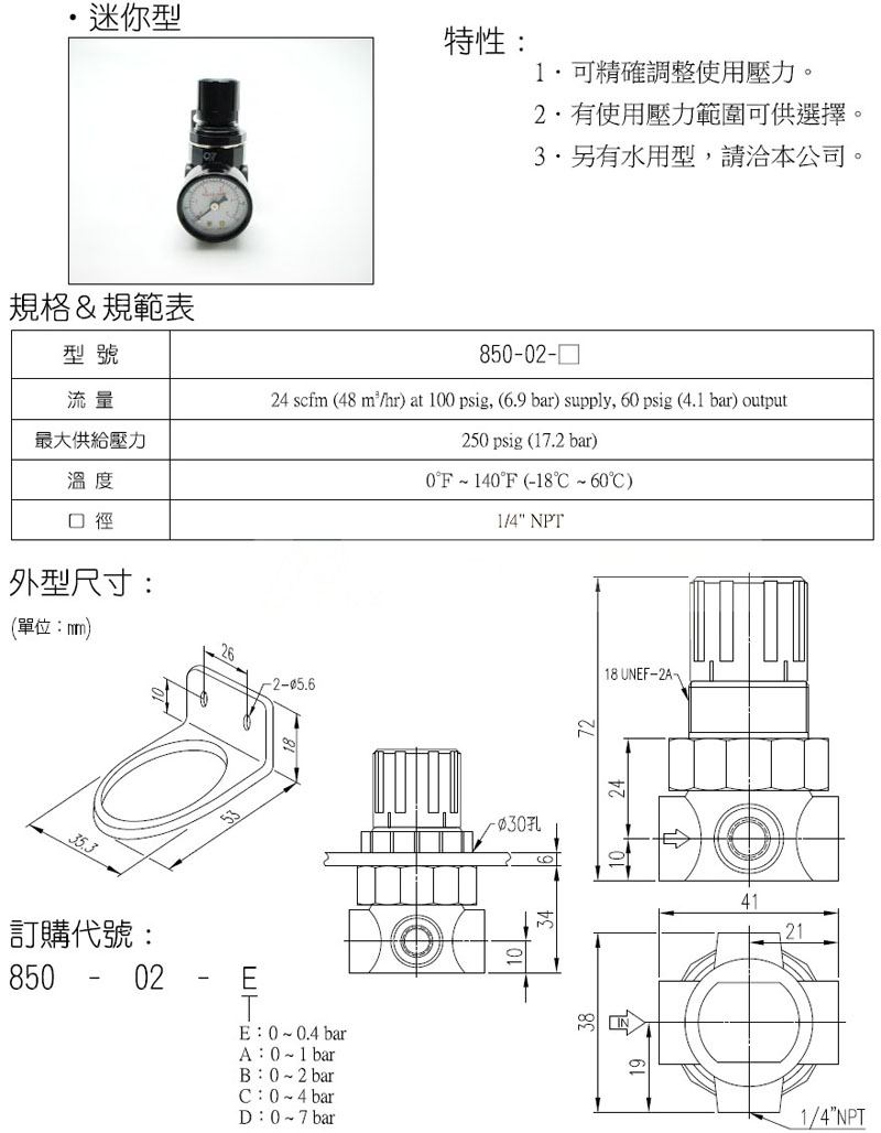 850-02-E,850-02-A,850-02-B,850-02-C,850-02-D,panix精密調(diào)壓閥