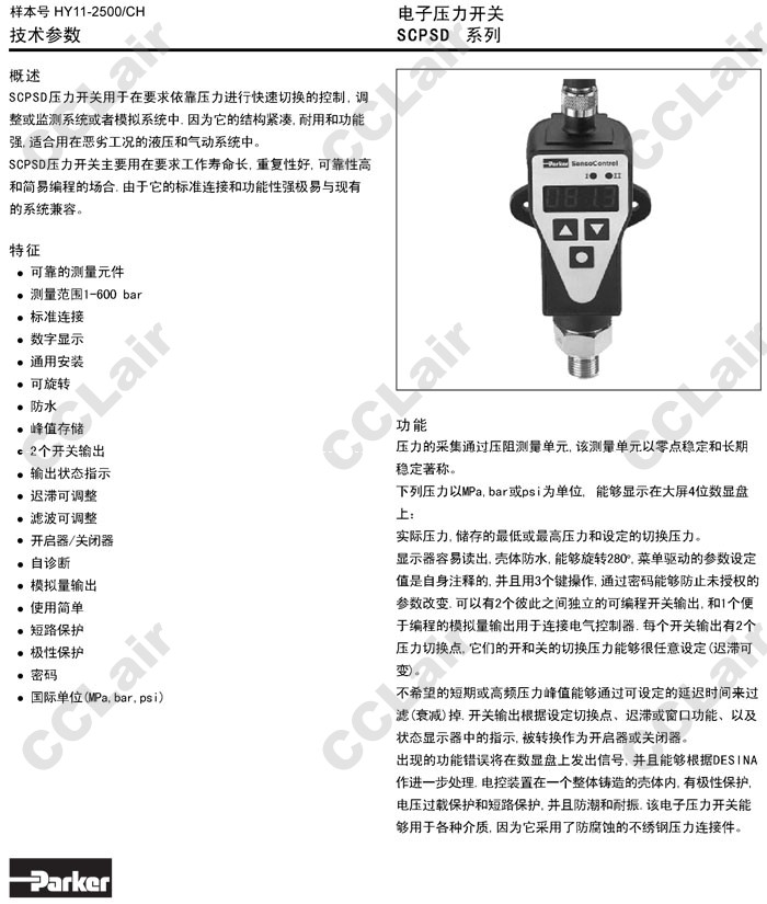 SCPSD-015,SCPSD-060,SCPSD-100,SCPSD-250,SCPSD-400,SCPSD-600,SCPSD-015-04-05,Parker電子壓力開關(guān)