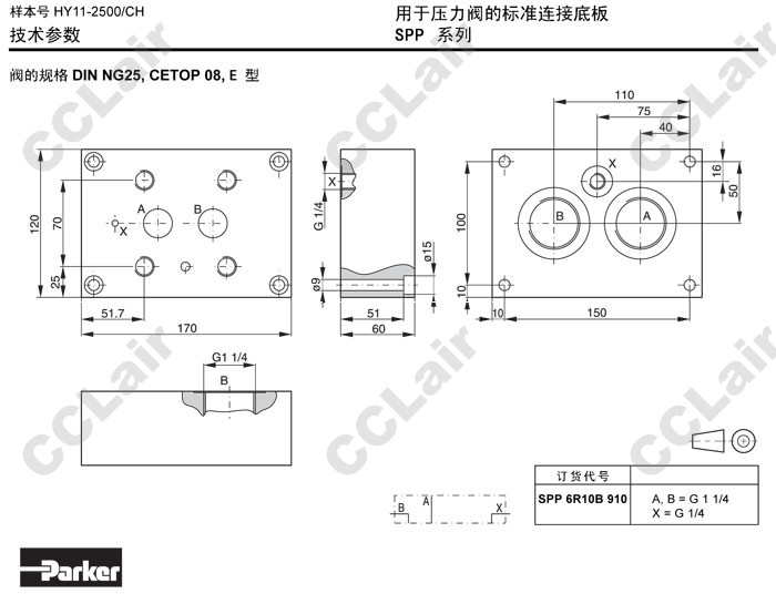 詳細(xì)信息 SPP6R10B910,Parker標(biāo)準(zhǔn)連接底板