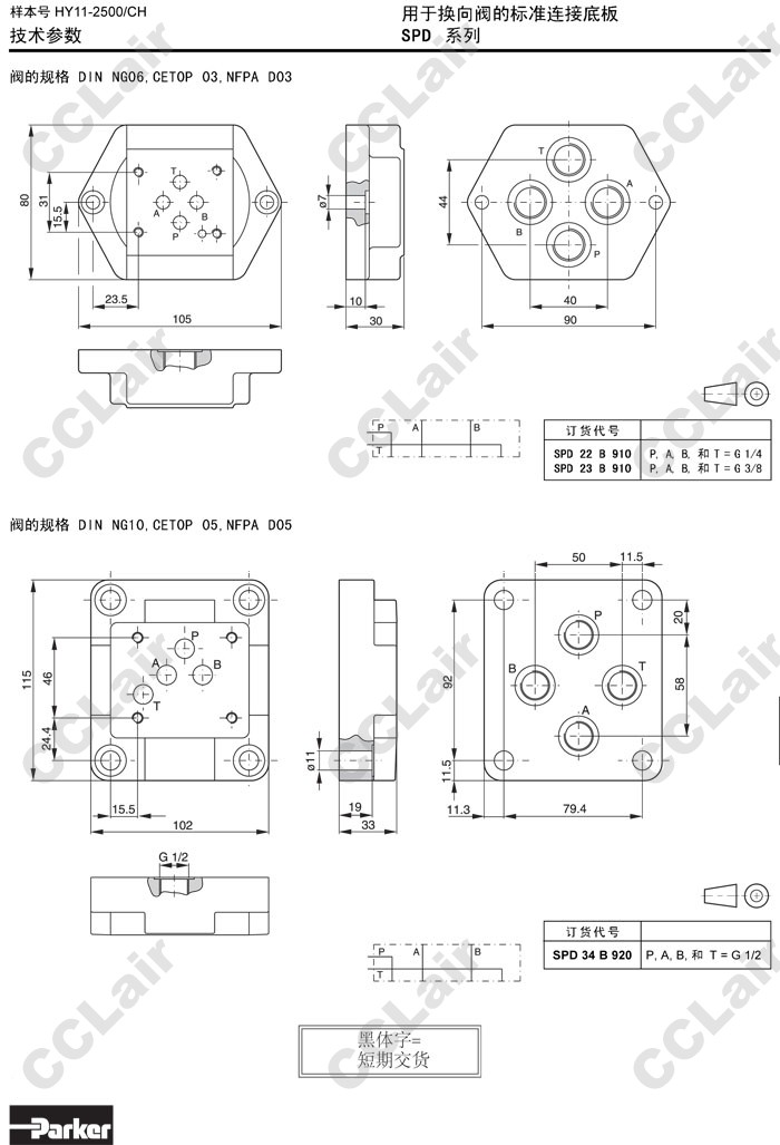 SPD22B910,SPD23B910,SPD34B920,Parker標(biāo)準(zhǔn)連接底板