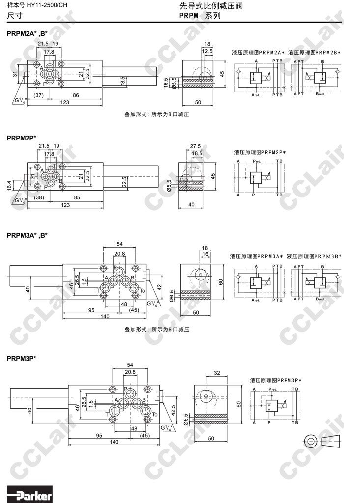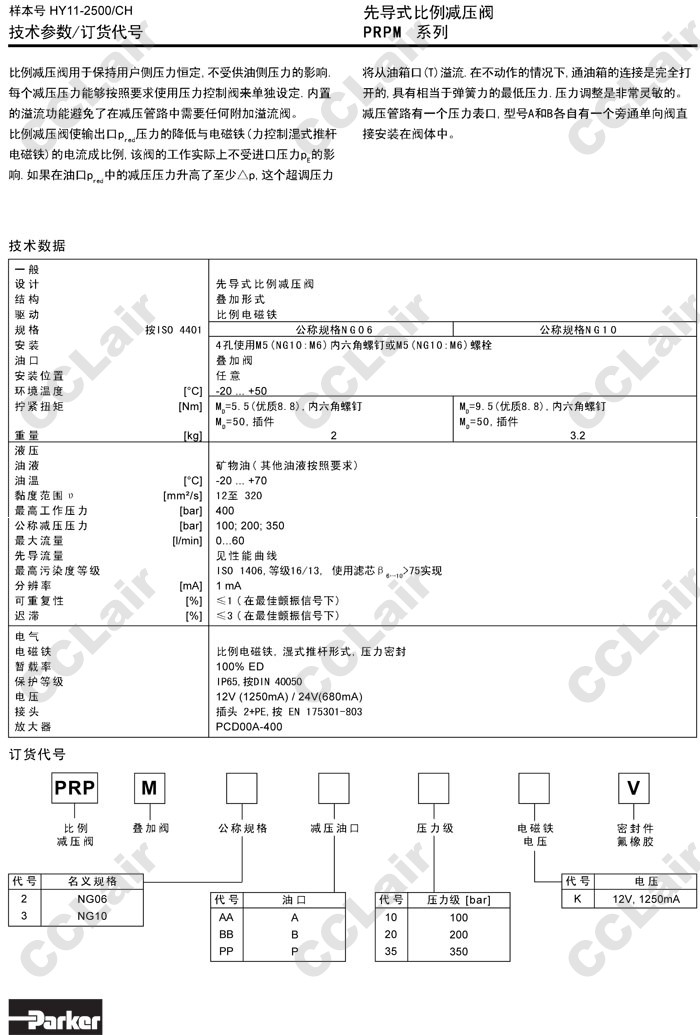 詳細(xì)信息 PRPM2AA10K,PRPM2BB10K,PRPM2PP10K,PRPM3AA10K,PRPM3BB10K,PRPM3PP10K,Parker先導(dǎo)式比例減壓閥
