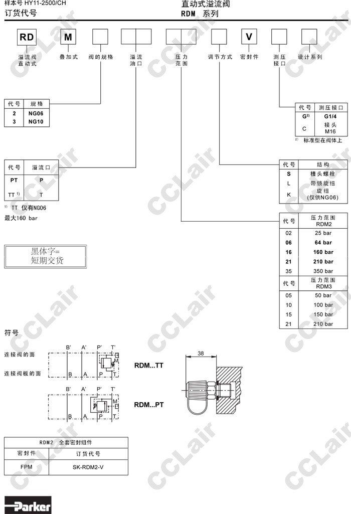 RDM2PT02,RDM2PT06,RDM2PT16,RDM2PT21,RDM2PT35,RDM2TT02,RDM2TT06,RDM2TT16,RDM2TT21,RDM2TT35,Parker直動式溢流閥