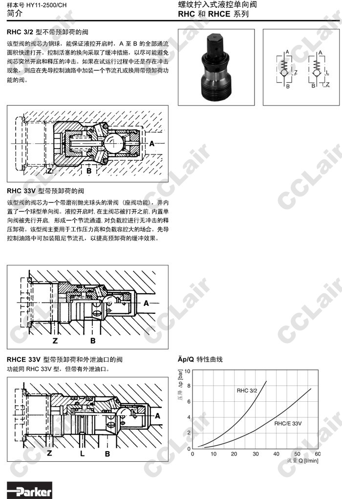 詳細(xì)信息 RHC3/2,RHC33V,RHCE33V,Parker螺紋擰入式液控單向閥