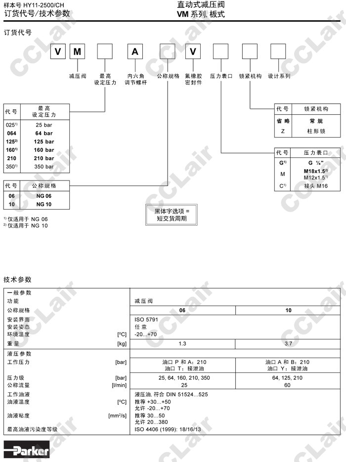VM025A06VG,VM160A06VG,VM350A06VG,VM125A10VC,VM064A06VG,VM210A06VG,VM064A10VM,Parker直動式減壓閥