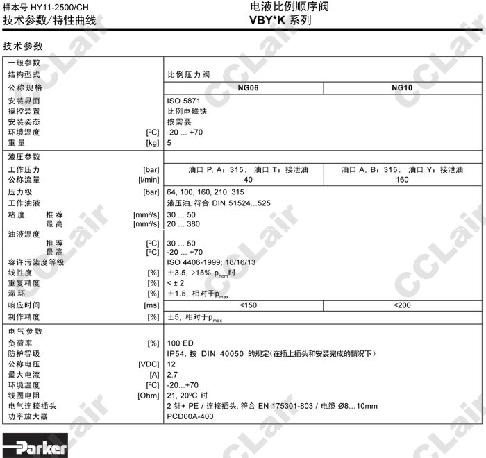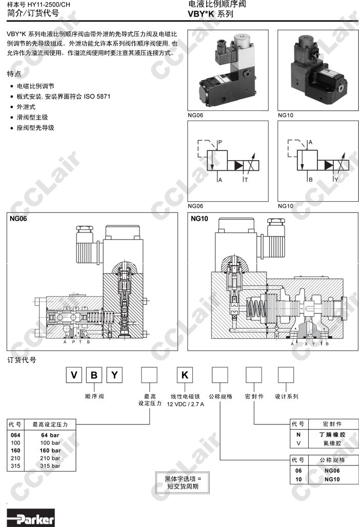 VBY064K06N,VBY100K06N,VBY160K06N,VBY210K06N,VBY315K06N,VBY064K10N,VBY100K10N,Parker電液比例順序閥