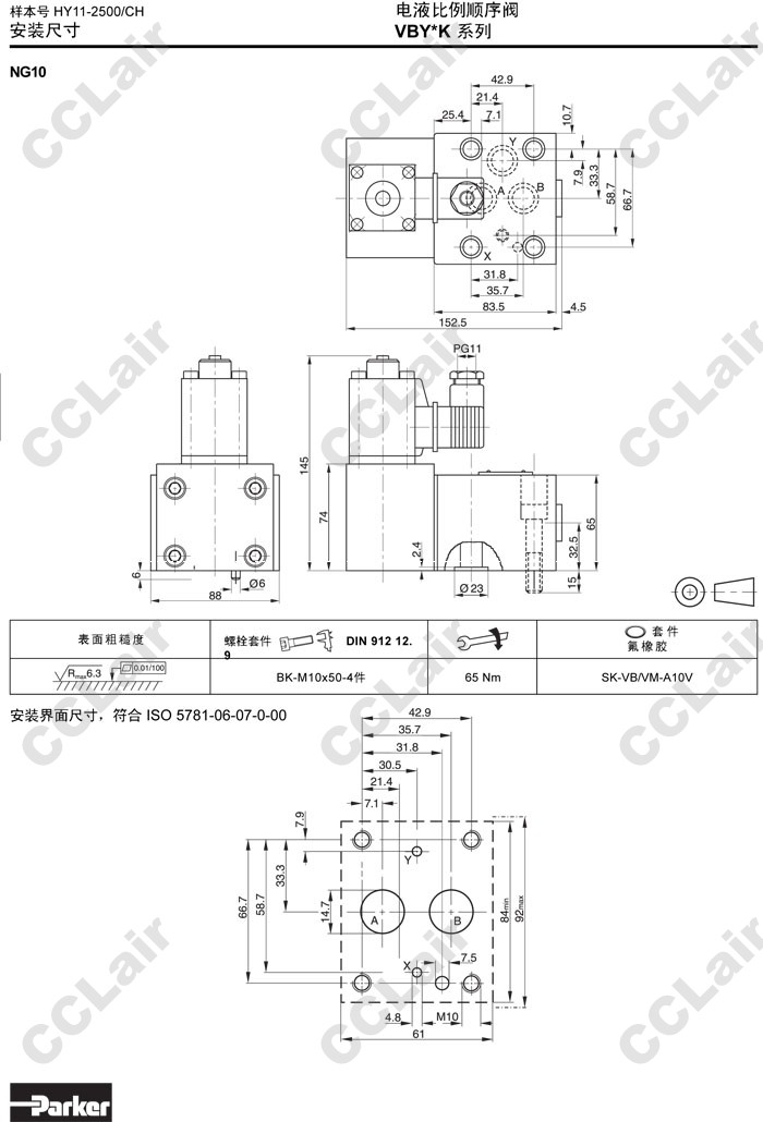 詳細信息 VBY064K06N,VBY100K06N,VBY160K06N,VBY210K06N,VBY315K06N,VBY064K10N,VBY100K10N,Parker電液比例順序閥