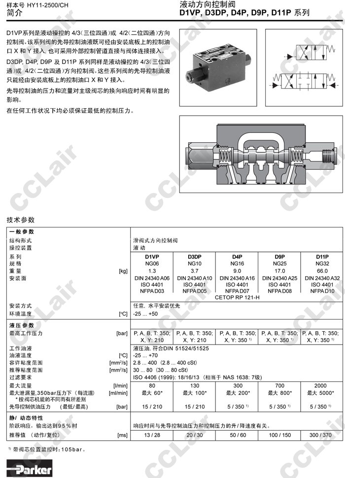 D4P,D9P,D11P,D4P1C2N,D9P1C2N,D11P1E2N,D4P1C2V,D9P1C2V,D11P1E2V,Parker液動方向控制閥