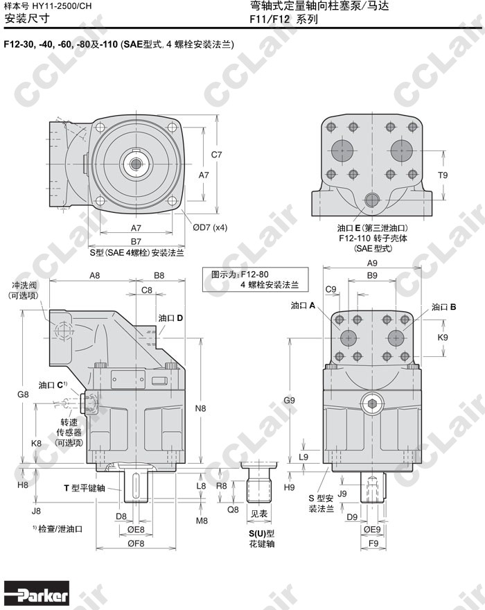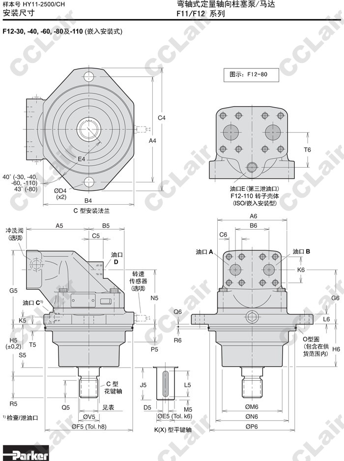 F12-30-R,F12-40-R,F12-50-R,F12-60-R,F12-80-R,F12-110-R,F12-110-RF-IV-K,Parker彎軸式定量軸向柱塞泵