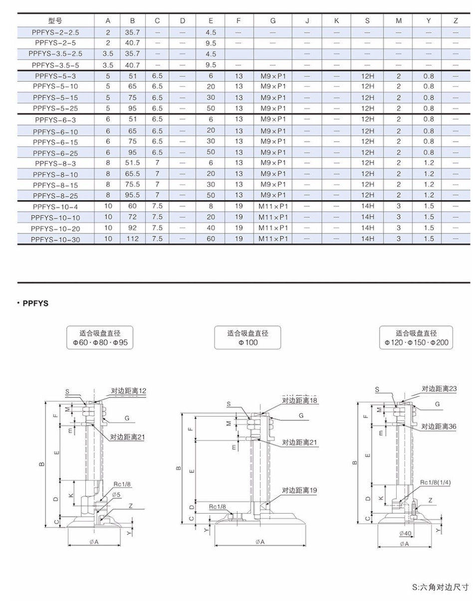 PPFYS-2-2.5,PPFYS-2-5,PPFYS-3.5-2.5,PPFYS-3.5-5,PPFYS-5-3,標(biāo)準(zhǔn)垂直真空口帶緩沖吸盤組