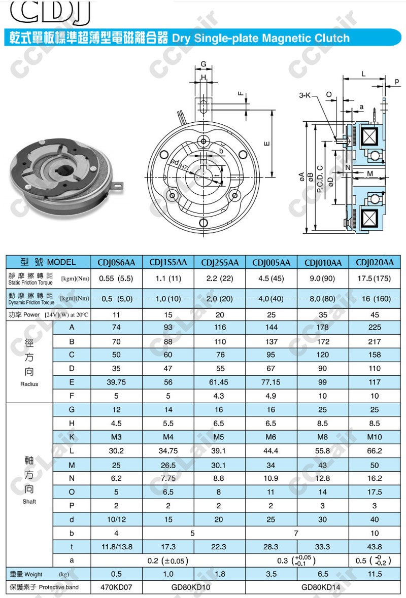 詳細(xì)信息 CDJ0S6AA,CDJ1S5AA,CDJ2S5AA,CDJ005AA,CDJ010AA,CDJ020AA,電磁離合器,CCLair