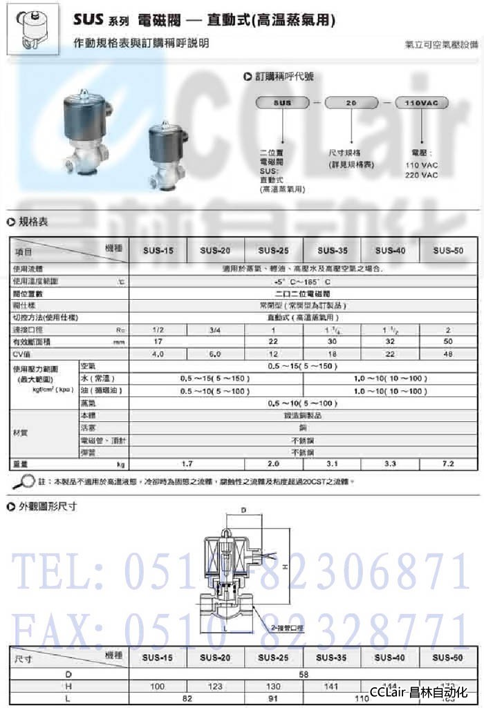 詳細信息 SUS-15,SUS-20,SUS-25,SUS-35,SUS-40,SUS-50,蒸汽電磁閥