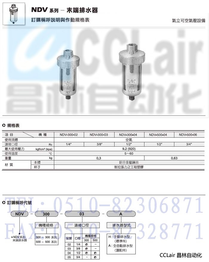 詳細信息 NDV-300-02,NDV-300-03,NDV-300-04,NDV-500-04,NDV-500-06,排水器