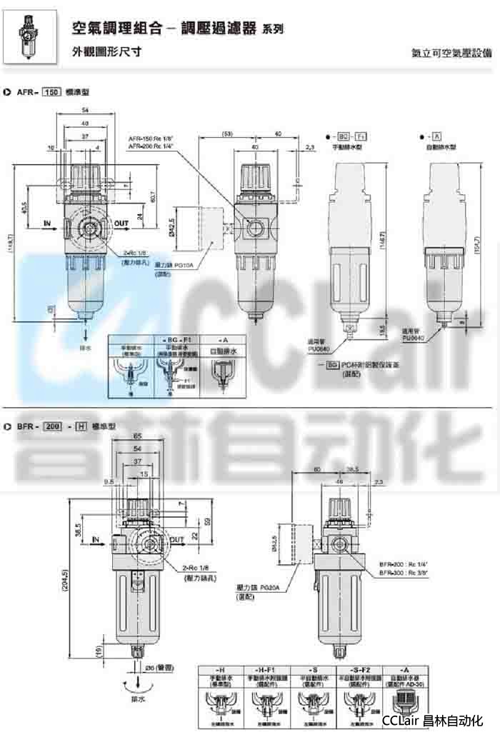 詳細(xì)信息 AFR-150,AFR-200,BFR-200,BFR-300,CFR-400,CFR-600,調(diào)壓過濾器